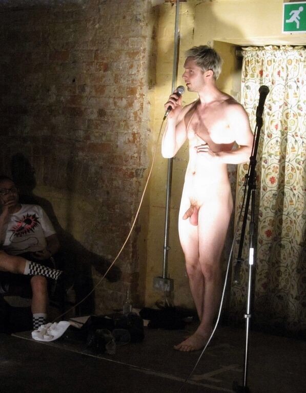 David looks down and up a few times and then cautiously puts his hands to his sides, pushing his very hairy chest and belly forward. He is now in his underwear in the middle of the street.