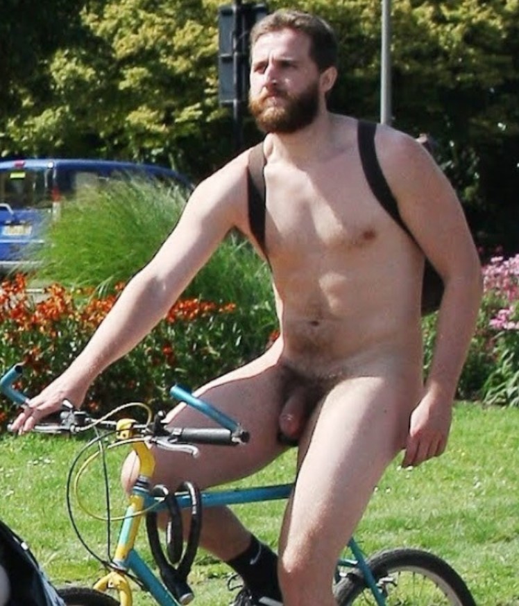 He then opens his eyes and looks behind him to see the whole gang run away with every stitch of clothing he had on. And now his meaty, hairy body and dick still dripping semen and firm, full butt bouncing a little from side to side as he quickly paces his legs back and forth is all on full display. And he has no way to cover himself. He has no choice but to walk home with every part of his body fully exposed.